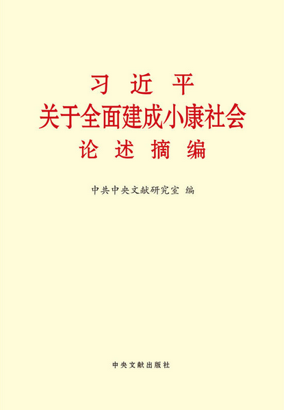 為幫助廣大干部群眾學習、理解、掌握習近平同志關于全面建成小康社會的重要論述,中共中央文獻研究室編輯了《習近平關于全面建成小康社會論述摘編》。本書內容,摘自習近平同志二○一二年十一月十五日至二○一六年三月十日期間的講話、談話、演講、賀信、指示等一百三十多篇重要文獻,分七個專題,共計三百三十二段論述。其中部分論述是第一次公開發表。