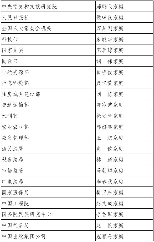 關(guān)于中央和國家機(jī)關(guān)第十三屆全國五好家庭候選家庭暨家庭工作先進(jìn)集體、先進(jìn)個人正式推薦對象和2022年全國最美家庭候選家庭名單的公示