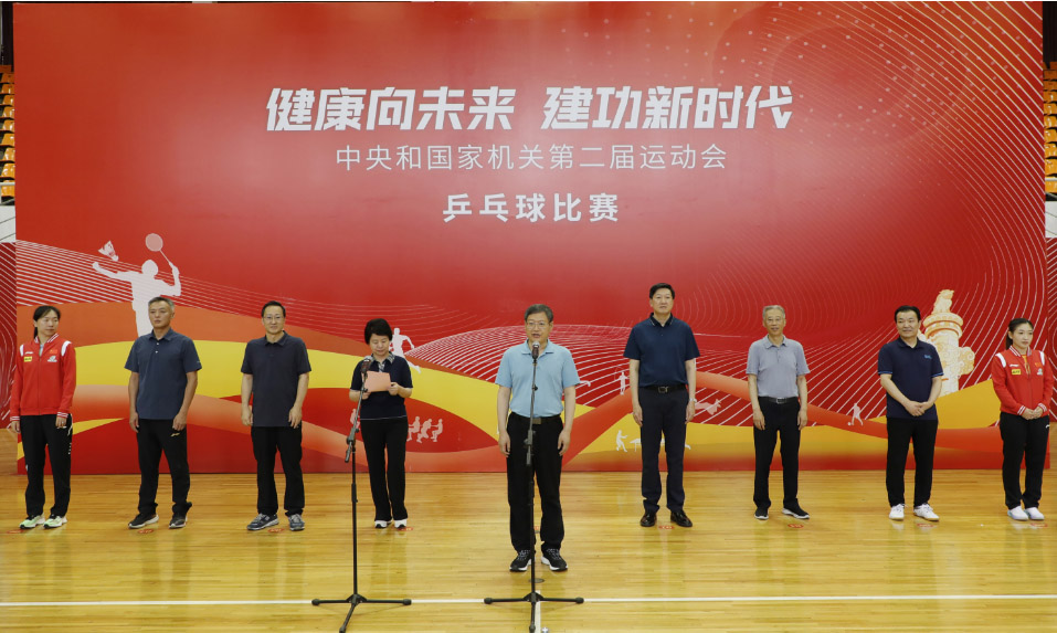 7月3日,中央和國家機關第二屆運動會乒乓球比賽開賽儀式在北京體育大學體育館舉行。運動會組委會主任、中央和國家機關工委分管日常工作的副書記郭文奇宣布比賽開始并為比賽開球,運動會組委會主任、國家體育總局局長高志丹致辭。運動會組委會執行主任、中央和國家機關工委副書記蔡淑敏主持開賽儀式,運動會組委會執行主任、國家體育總局副局長王瑞連出席。