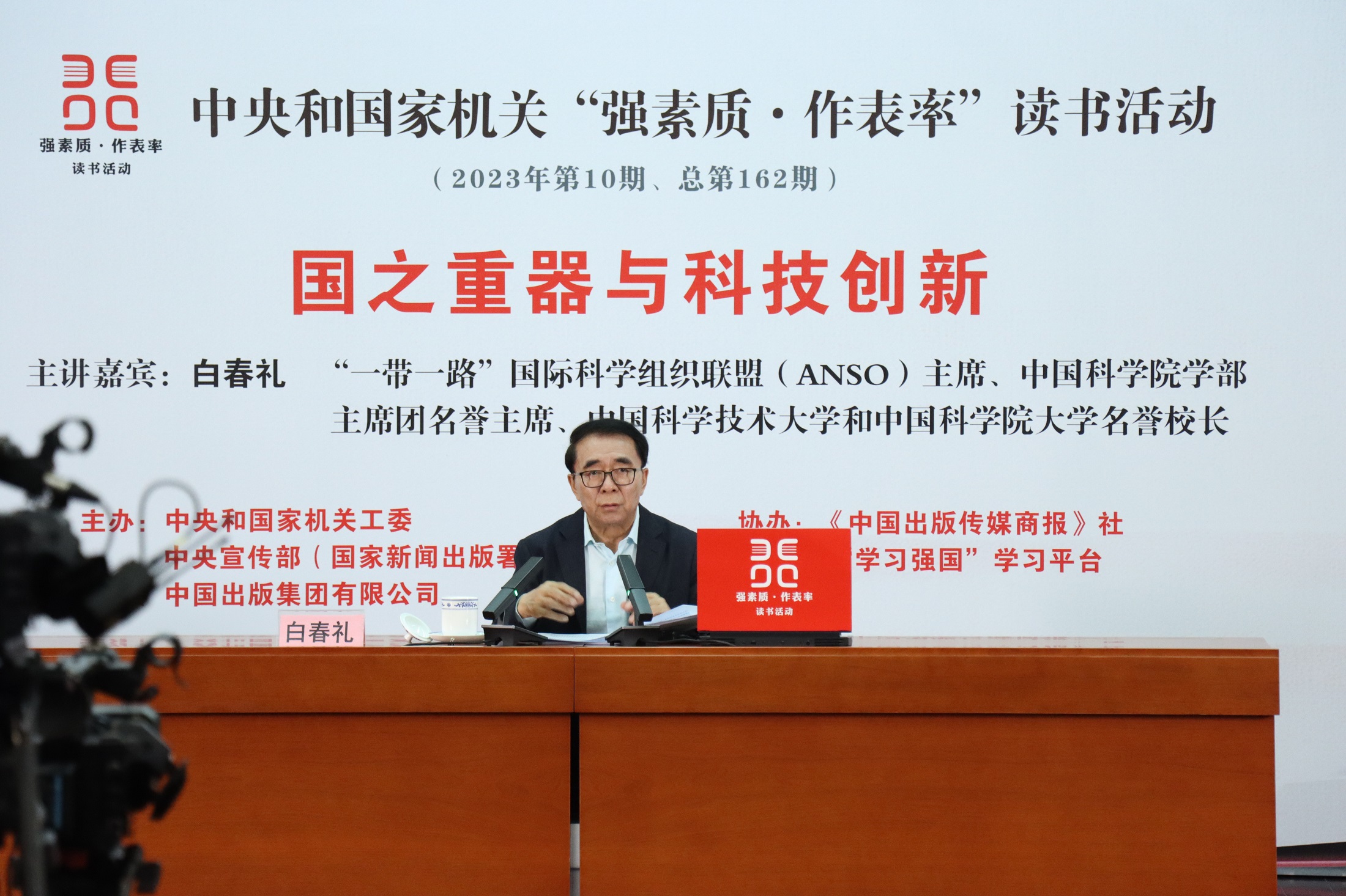 10月28日,中央和國家機關(guān)“強素質(zhì)·作表率”讀書活動2023年第10期主題講座在京舉辦。“一帶一路”國際科學(xué)組織聯(lián)盟(ANSO)主席、中國科學(xué)院學(xué)部主席團名譽主席、中國科學(xué)技術(shù)大學(xué)和中國科學(xué)院大學(xué)名譽校長白春禮院士以“國之重器與科技創(chuàng)新”為題作講座。中央和國家機關(guān)各部門黨員干部近400人參加活動,現(xiàn)場氣氛熱烈,座無虛席。