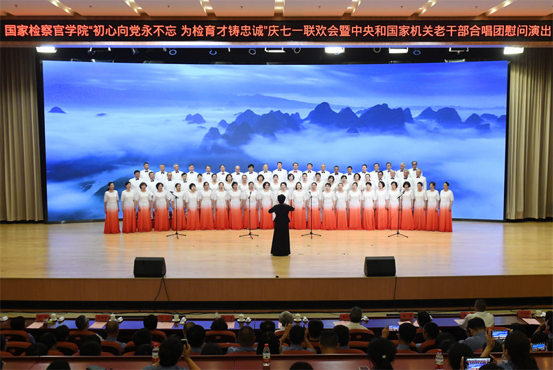 為慶祝中國共產(chǎn)黨成立103周年,中央和國家機關(guān)工委老干部活動中心于7月1日與國家檢察官學院共同舉辦“初心向黨永不忘 為檢育才鑄忠誠”慶七一聯(lián)歡會暨中央和國家機關(guān)老干部合唱團慰問演出活動,最高人民檢察院黨組成員、副檢察長宮鳴出席并講話。師生500余人在學院秉鑒持衡大講堂觀看演出。