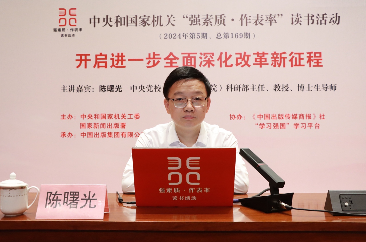8月31日,中央和國家機關“強素質·作表率”讀書活動學習貫徹黨的二十屆三中全會精神專題講座在京舉辦。中央黨校(國家行政學院)科研部主任、教授、博士生導師陳曙光以《開啟進一步全面深化改革新征程》為題作講座。中央和國家機關各部門黨員干部300余人參加活動。