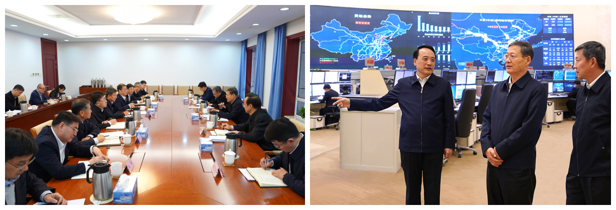 調(diào)研組深入國(guó)鐵集團(tuán)調(diào)度指揮中心,了解國(guó)鐵集團(tuán)在貫徹落實(shí)黨中央重大決策部署和習(xí)近平總書(shū)記重要指示批示精神,建設(shè)交通強(qiáng)國(guó)、鐵路先行的有關(guān)情況。郭文奇與郭竹學(xué)同志就認(rèn)真落實(shí)機(jī)關(guān)黨建主體責(zé)任、全面提高新時(shí)代新征程機(jī)關(guān)黨建質(zhì)量等情況,進(jìn)行了深入交流,對(duì)國(guó)鐵集團(tuán)全面深化改革、以高質(zhì)量黨建促進(jìn)鐵路事業(yè)高質(zhì)量發(fā)展的做法經(jīng)驗(yàn)給予肯定。
