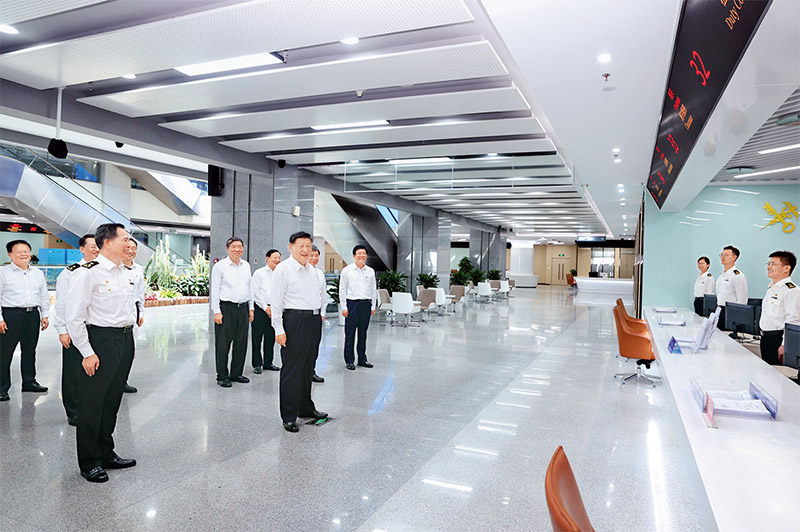 2024年10月15日至16日,中共中央總書記、國家主席、中央軍委主席習近平在福建考察。這是16日上午,習近平在中國(福建)自由貿易試驗區廈門片區考察時,同綜合服務大廳窗口工作人員親切交流。 新華社記者 鞠鵬/攝