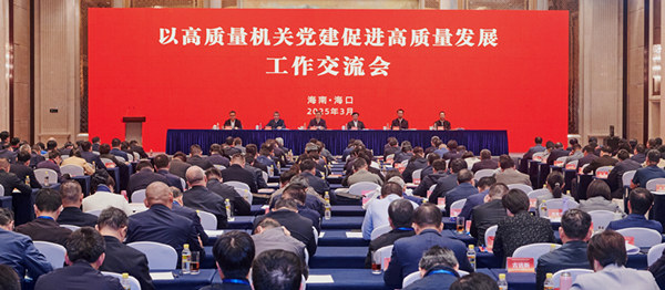 以高質量機關黨建促進高質量發展工作交流會3月18日在海口召開。會議圍繞深入學習貫徹習近平總書記關于黨的建設的重要思想特別是關于機關黨建的重要講話和重要指示精神,交流以高質量機關黨建促進高質量發展的做法和成效。中央和國家機關工委分管日常工作的副書記郭文奇出席會議并講話。海南省委書記、省人大常委會主任馮飛出席會議并致辭。中央和國家機關工委副書記燕軍主持會議。